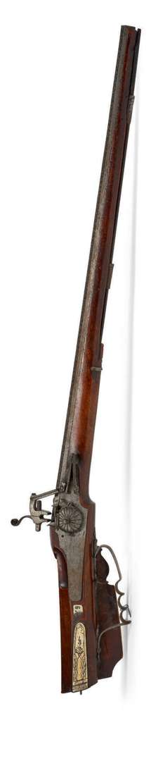 FUSIL DE CHASSE À ROUET avec incrustations de plaques d'os dont une biche