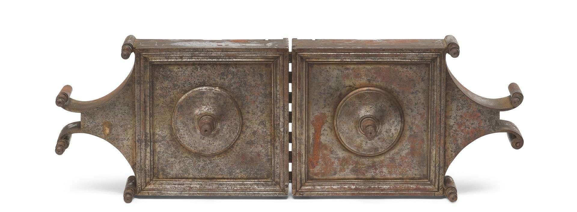 SERRURE DE DEUX PIÈCES de fer forgé à sept pênes. Les étoquiaux en forme d