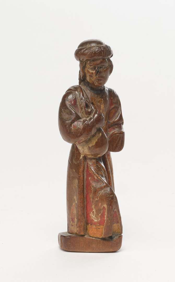 SAINT FÉLIX DE CANTALICE en bois sculpté et anciennement polychrome, il est pourvu de la besace emblématique.Italie, Val d'Aoste, XVIIIe siècle