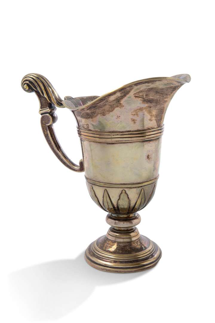 Aiguière casque en métal argenté (argent doublé). L'anse à volute.