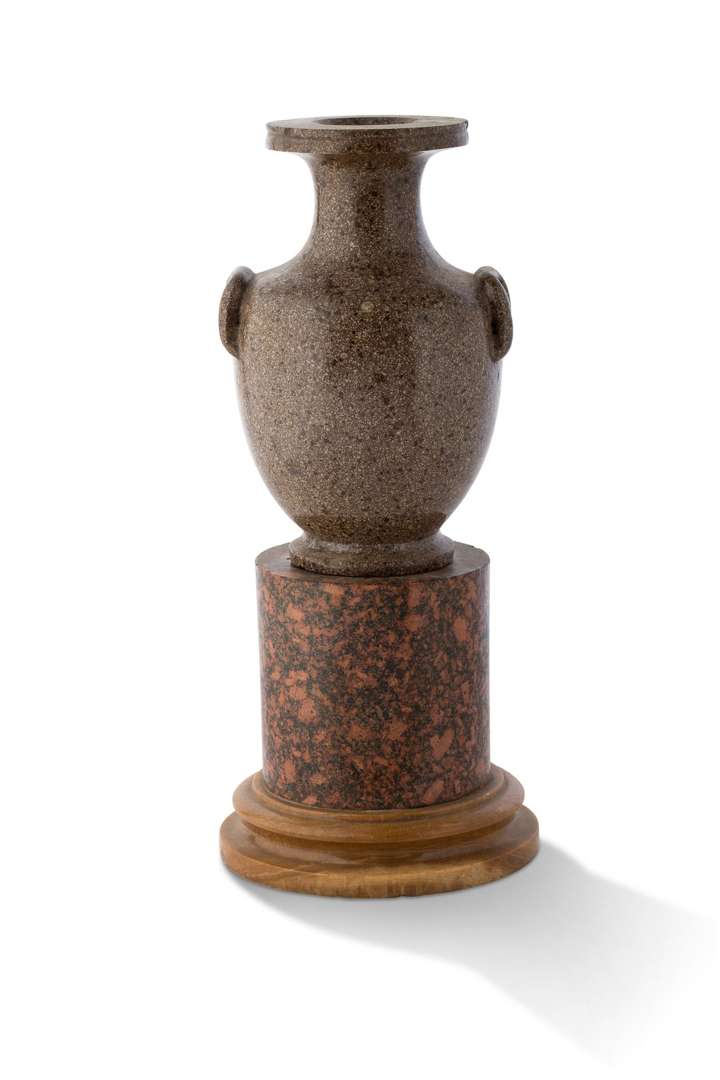 Urne en porphyre gris de Suède, de forme balustre à deux anses.