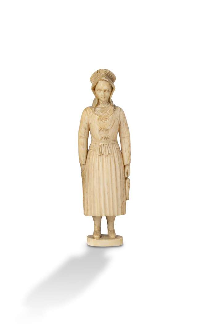 ~ Statuette en ivoire sculpté figurant une Polletaise tenant des poissons