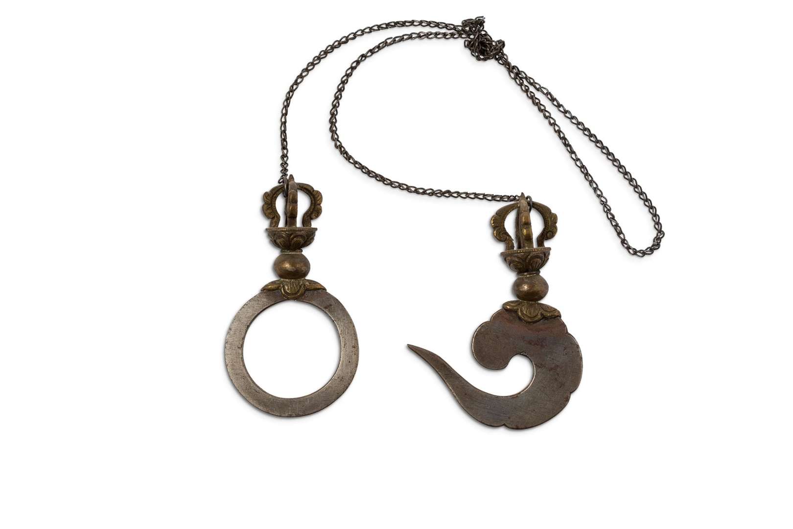 Crochet et anneau en acier, la monture en forme de Vajra en bronze ciselé doré.