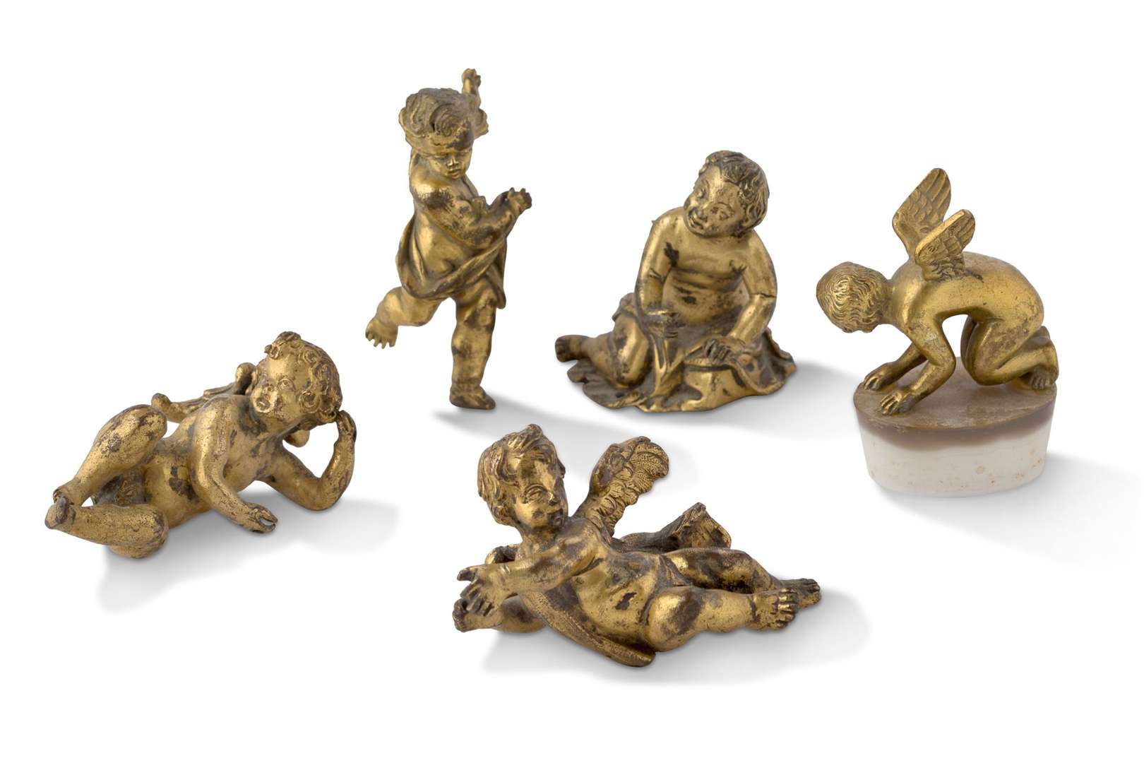 Suite de sept putti en bronze doré.