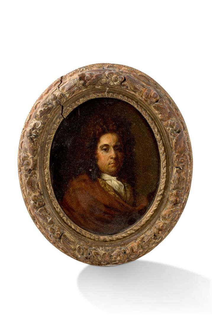 Huile sur panneau ovale, signée et datée au dos «furguron pinx. anno 1708» 16,5 x 13 cm