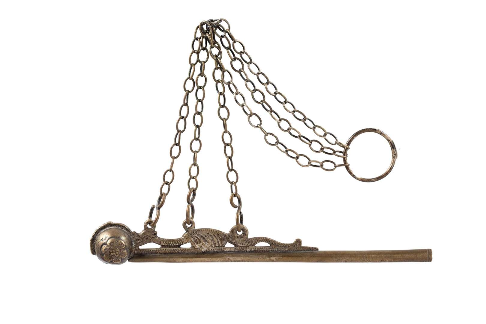 Sifflet de manoeuvre de marine dit «Rossignol» en argent à décor d'une chimère à la queue entrelacée, avec sa chaine.
