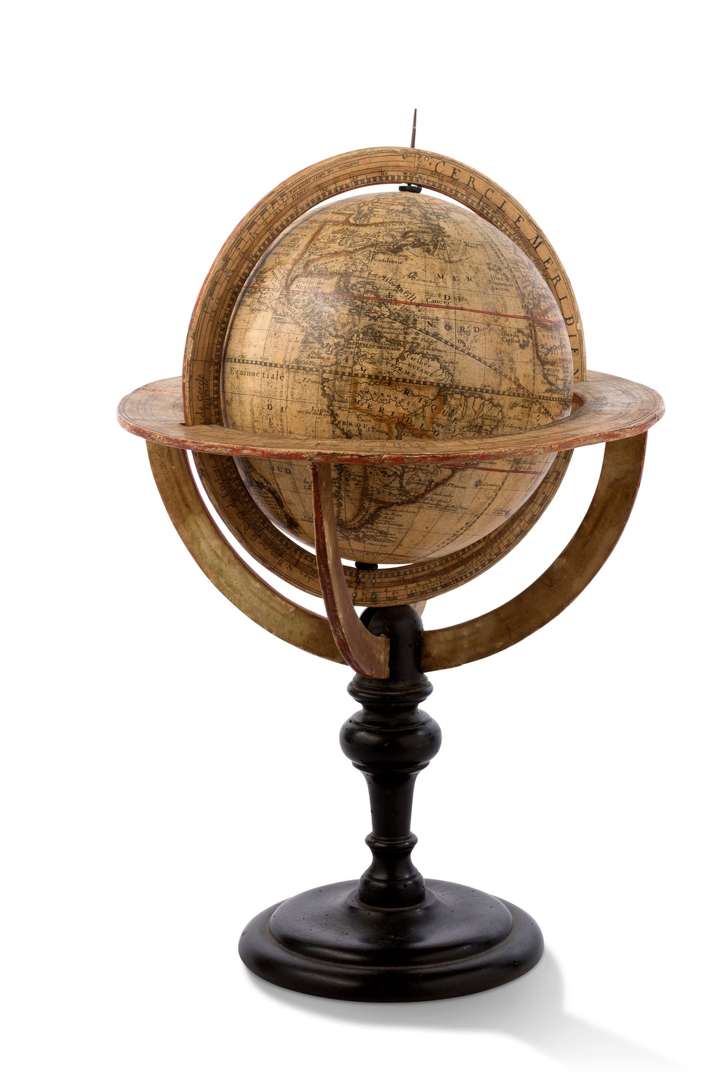 Globe terrestre en papier imprimé signé dans un cartouche «Se fait et vend chez