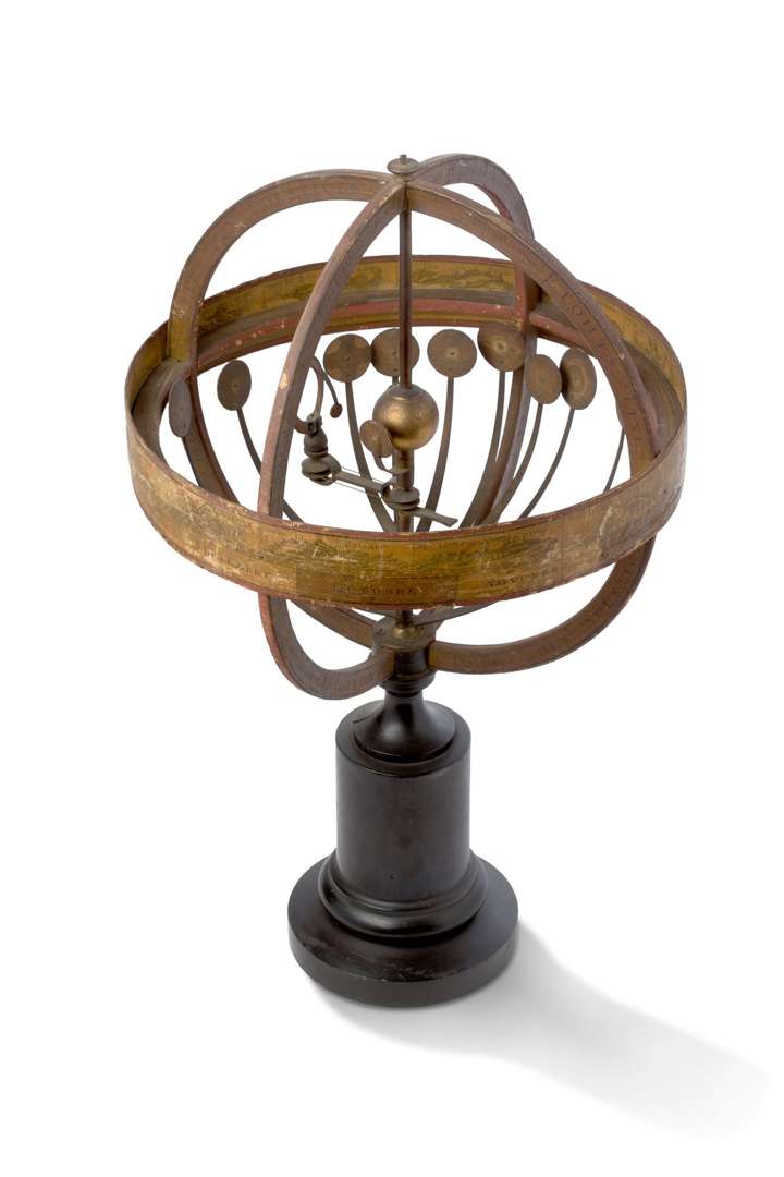 Planétaire héliocentrique de type Copernicien, en bois, papier imprimé et
