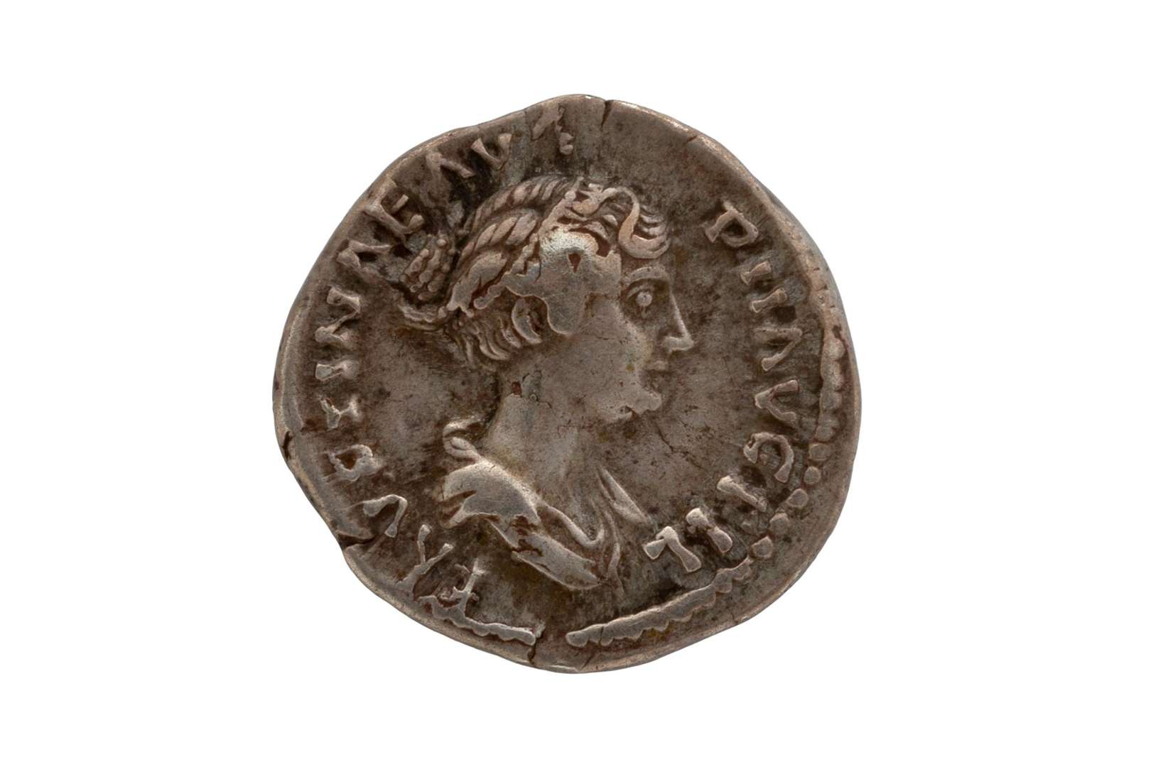 SESTERCE antique en argent figurant à l'avers la tête de l'impératrice Luc