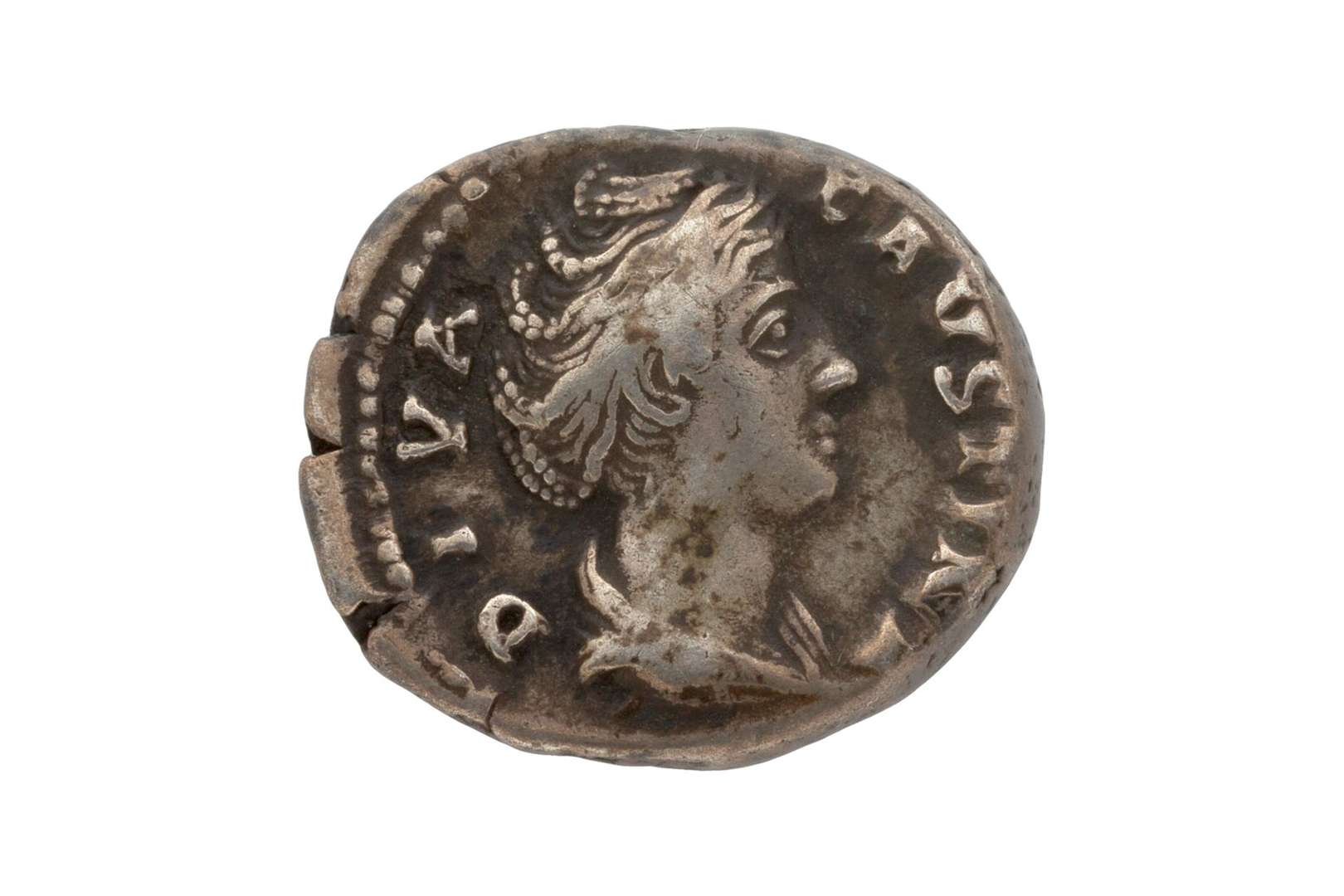 SESTERCE antique en argent figurant à l'avers la tête de l'impératrice Luc