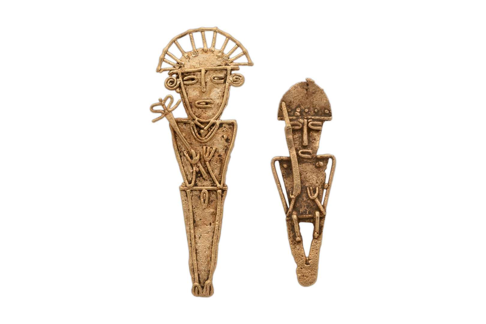 DEUX EX-VOTO «TUNJOS» en or jaune, travail artisanal. Culture Muisca (Colombie), vers 1000 après J.-C.