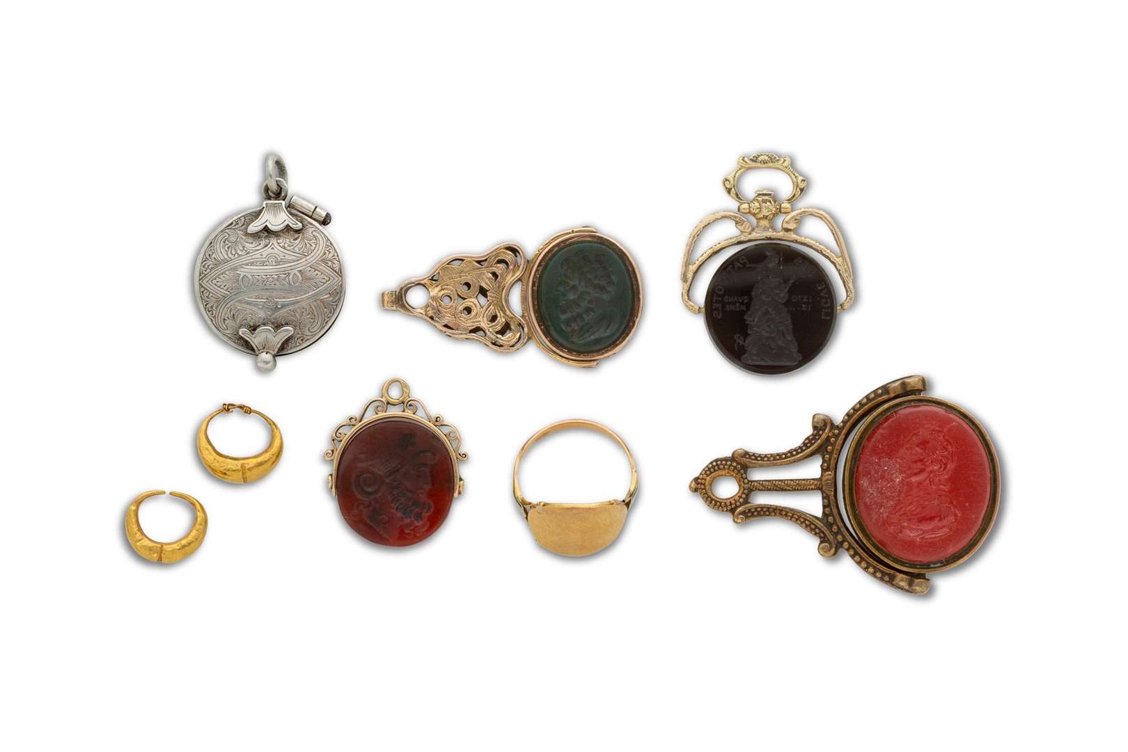LOT D'INTAILLES à monture en or jaune :-La Ligue des Patriotes, intaille s