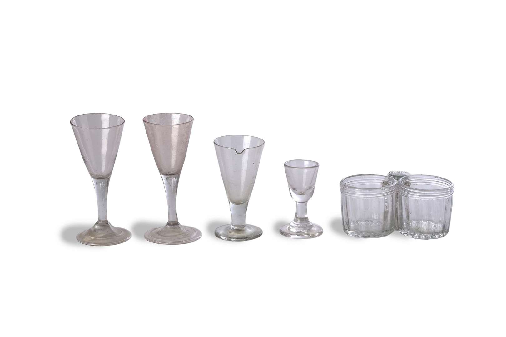 LOT DE VERRERIES composé de :-deux verres à jambe en cornet, pieds ourlés.