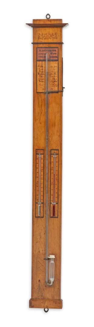 en palissandre daté, monogrammé et dédicacé : « 23 août 1852 L.V.H., au très...Mr JVG curé du Finistère » Double thermomètre : un au mercure argent (Fahrenheit) et un au liquide rouge de vin. Indication Réaumur.