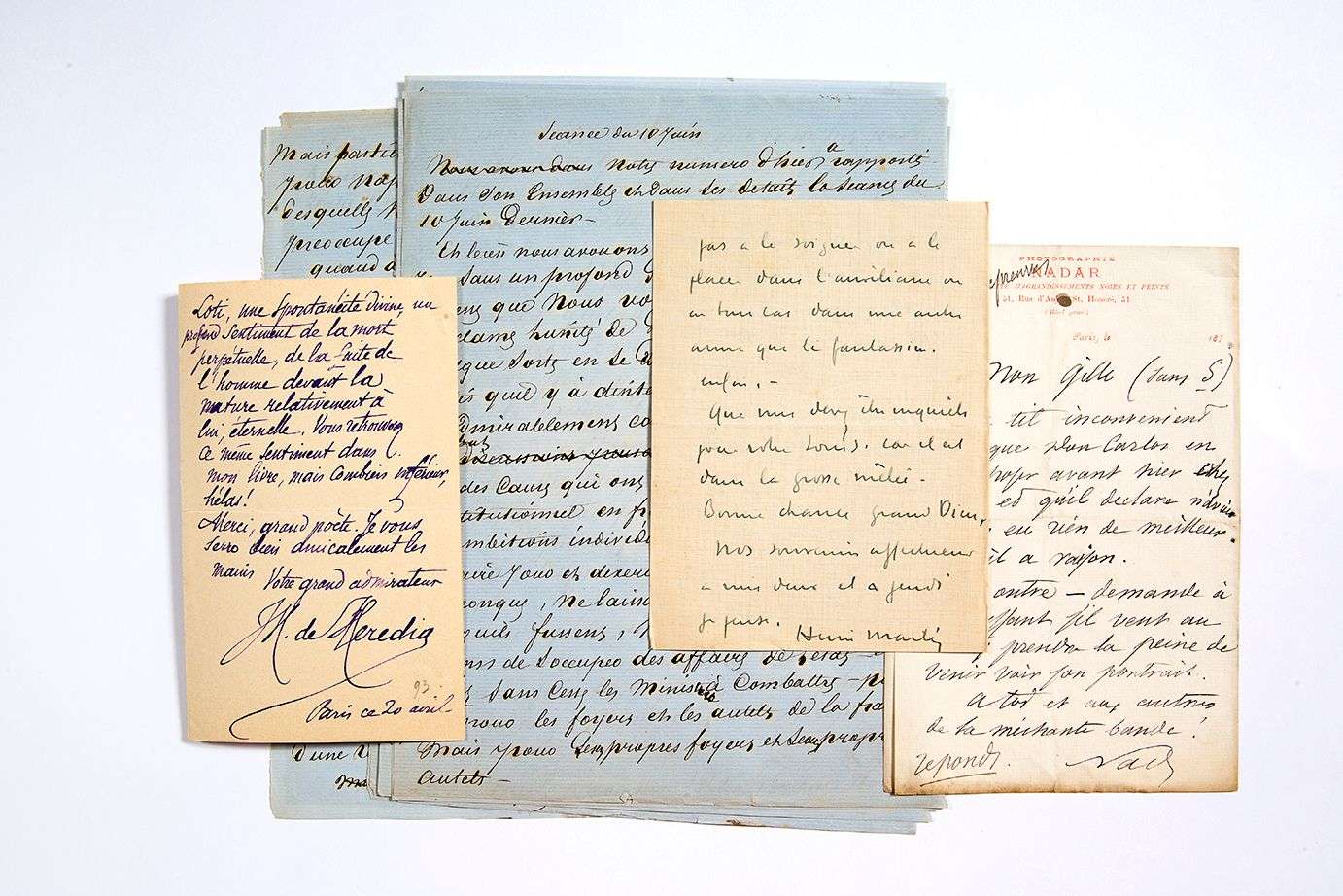 Ensemble de documents divers [HEREDIA, DUMAS PERE, NADAR, MARTIN, MISTRAL]