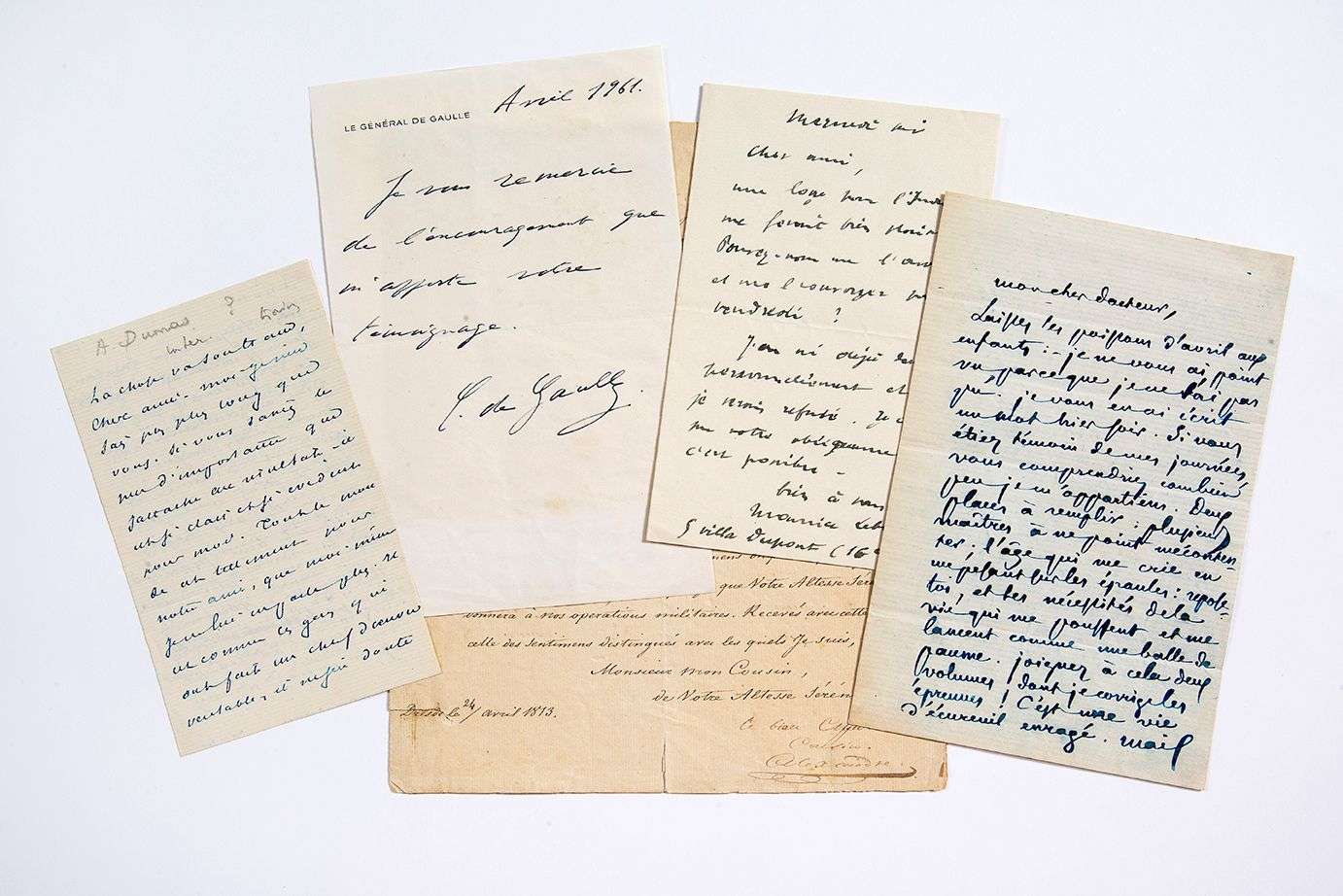 Ensemble de documents divers [ALEXANDRE I de RUSSIE, DE GAULLE, BARRES, DUMAS FILS, LEBLANC, CONCHE].