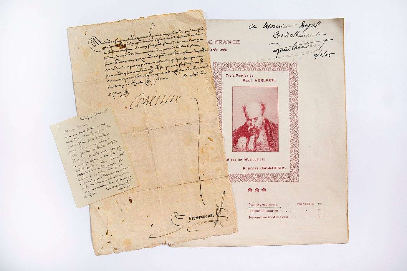 Ensemble de documents divers [CASADESUS, VERNE Catherine de MEDICIS].