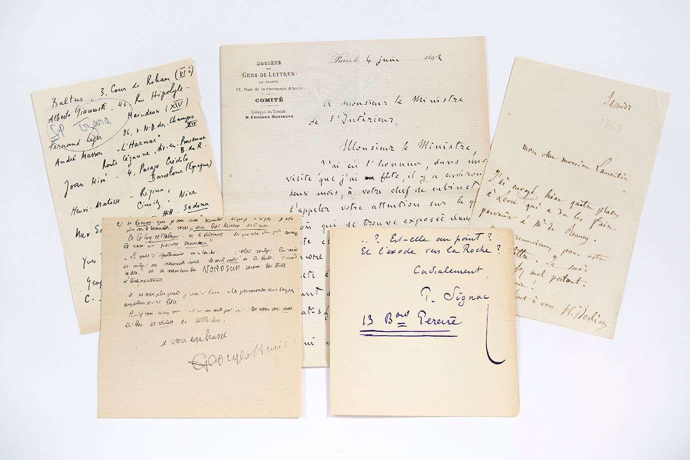 Ensemble de documents divers [BERLIOZ, AURIC, ZOLA, SIGNAC, MERMOZ, TZARA]