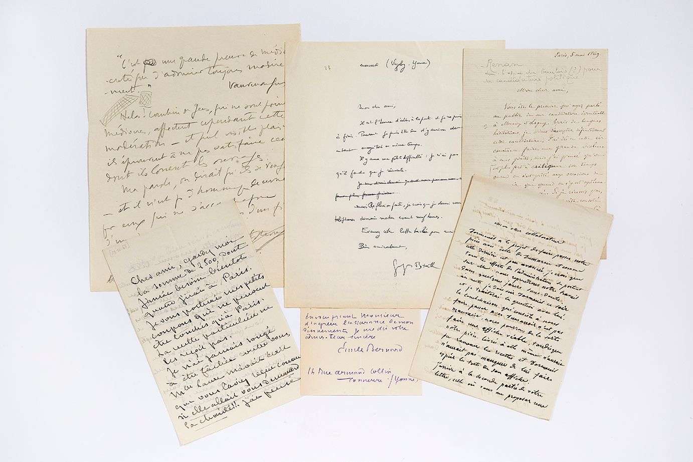 Ensemble de documents divers [GUITRY, LABICHE, MALRAUX, CHARDONNE, BOUSQUET, BATAILLE, MARTIN DU GARD, LAMENNAIS, CLARETIE, DE MOLLIEN, POINCARE, BAZIN, COPPEE, DUHAMEL, SAND, FORT, RENAN, CHAUMEIX, COLLECTION LITTERATURE, FRANCE, BERNARD, SAINTE-BEUVE].