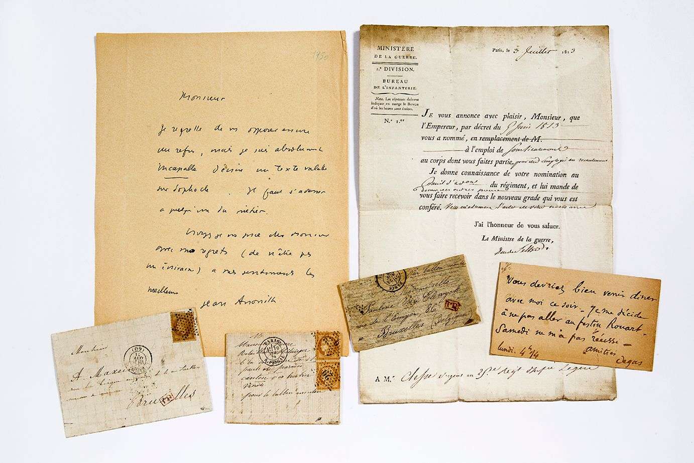 Ensemble de documents divers [DEGAS, ANOUILH, REMY, FELTRE, BERLIER, COLLECTION RELIGION, GUERRE DE 1870].