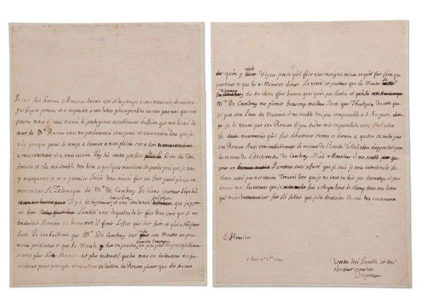 L.A.S. «Despreaux», Paris 10 novembre 1699, à son ami Claude BROSSETTE| 2 pages in-4, montées sur papier fort.