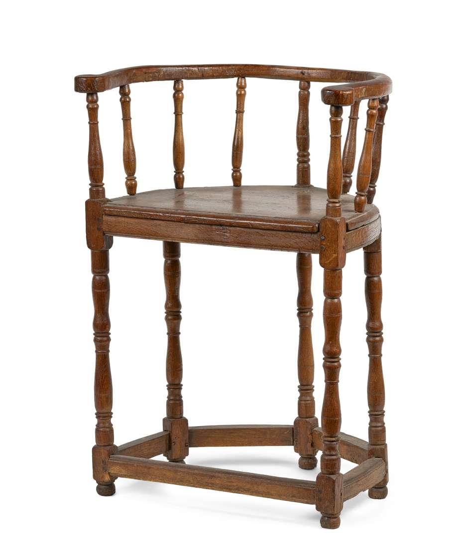 Fauteuil d'Église ou de chantre en chêne mouluré sculpté, dossier et piètement balustre à entretoise.