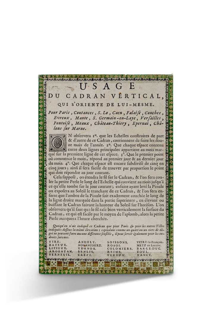 Cadran de direction vertical «pour Paris, ses environs et autres lieux», signé «À Paris chez Baradelle, Quay de l'horloge du