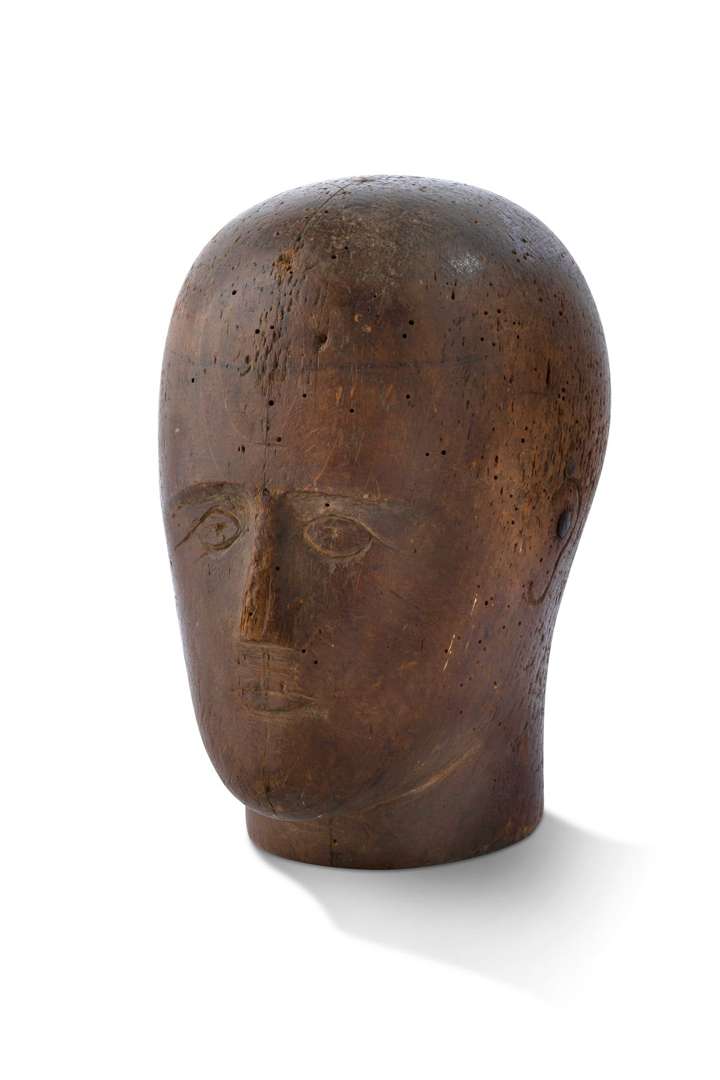 Marotte de modiste ou porte-chapeau représentant un visage en bois sculpté