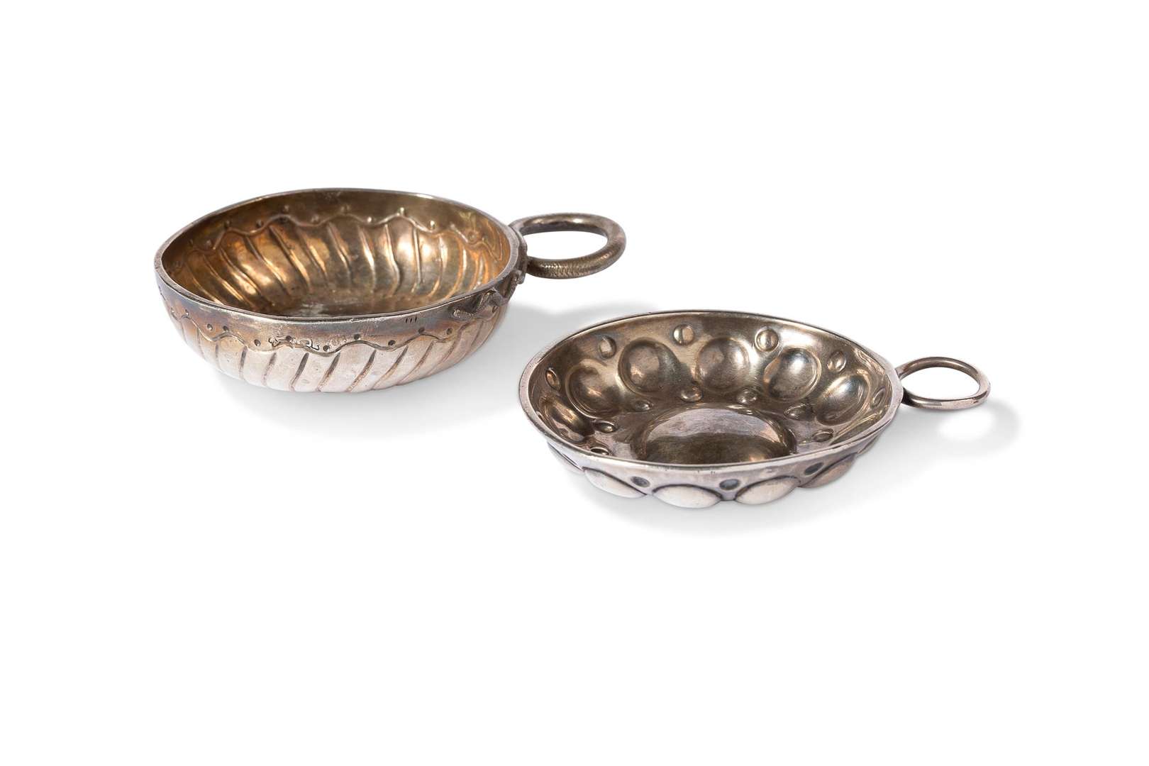 - Un tastevin en argent à décor au repoussé de cupules, gravé d'une inscription «F. Tixier à Meursault».