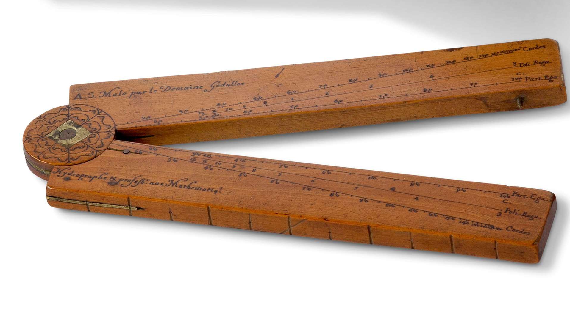 Compas de proportion en buis gravé et laiton, signé «A. S. Malo par le Demaine Godalles /