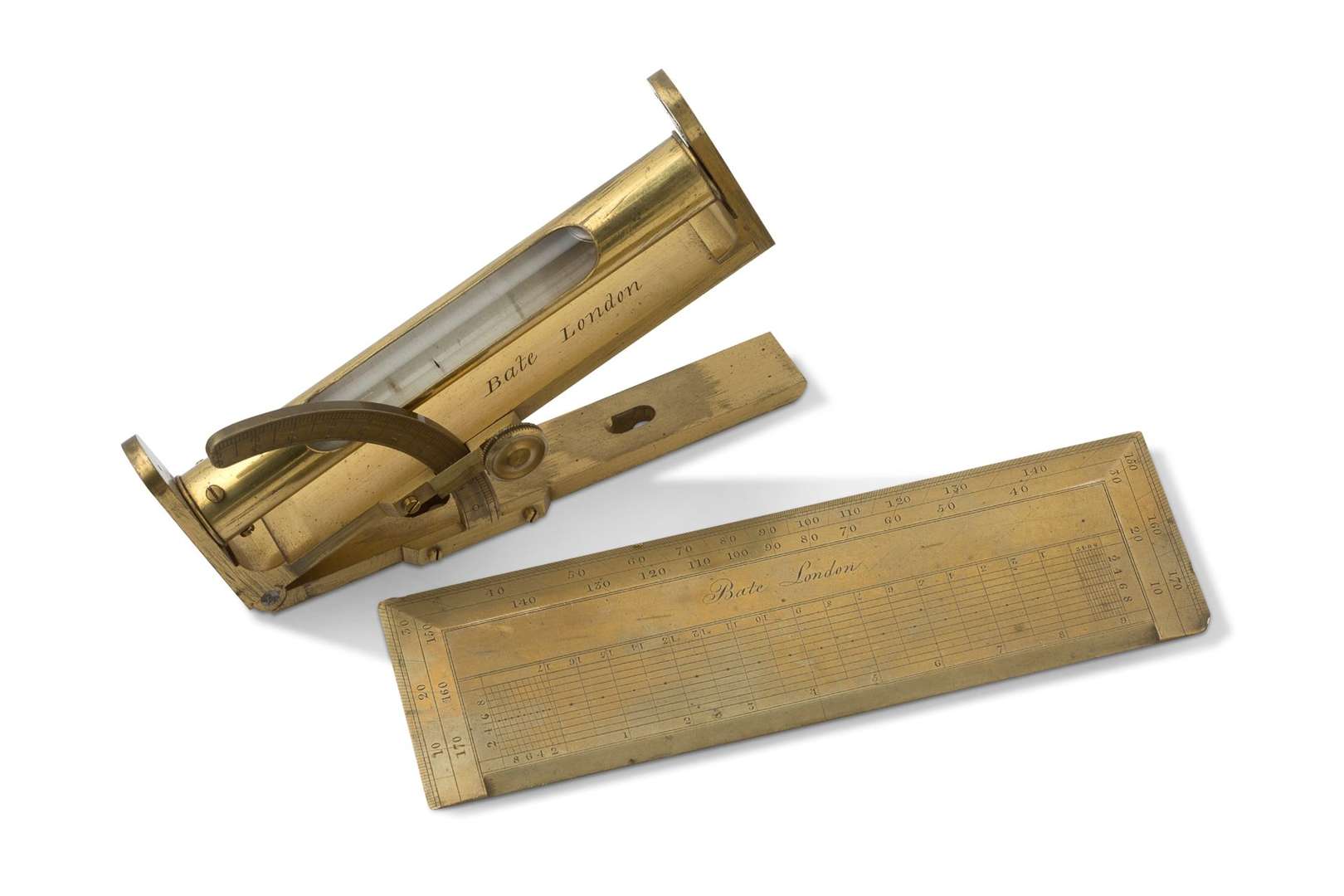 Lots d'instruments en laiton signés «Bate London» comprenant un niveau dans son écrin en chagrin noir et une règle de mesure.