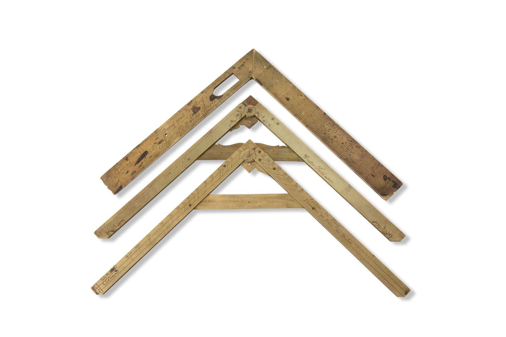 Suite de deux pieds de Roi et un demi pied de Roi en laiton gravé, signés «Butterfield à Paris».