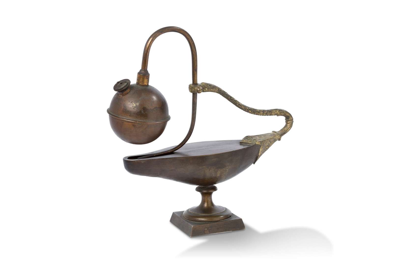Éolipyle ou boule d'Éole en bronze et cuivre à double patine brune et dorée, la prise à décor d'un serpent.