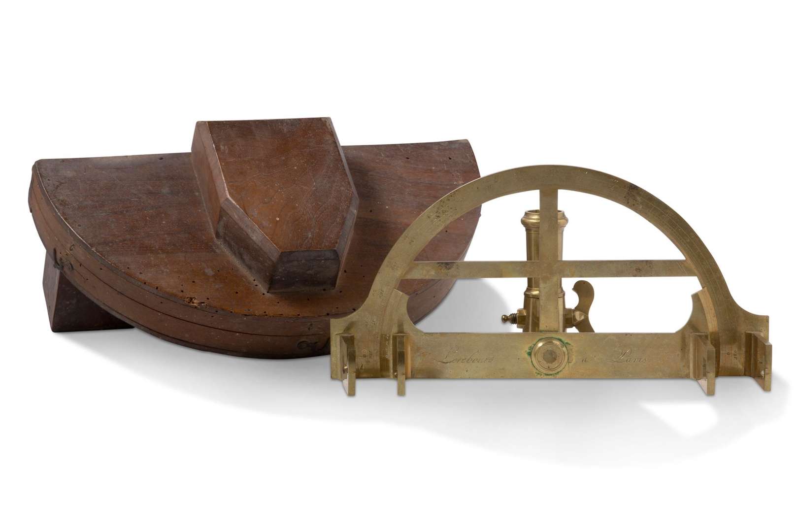 Graphomètre à pinnules en laiton, signé «Lerebours à Paris».
