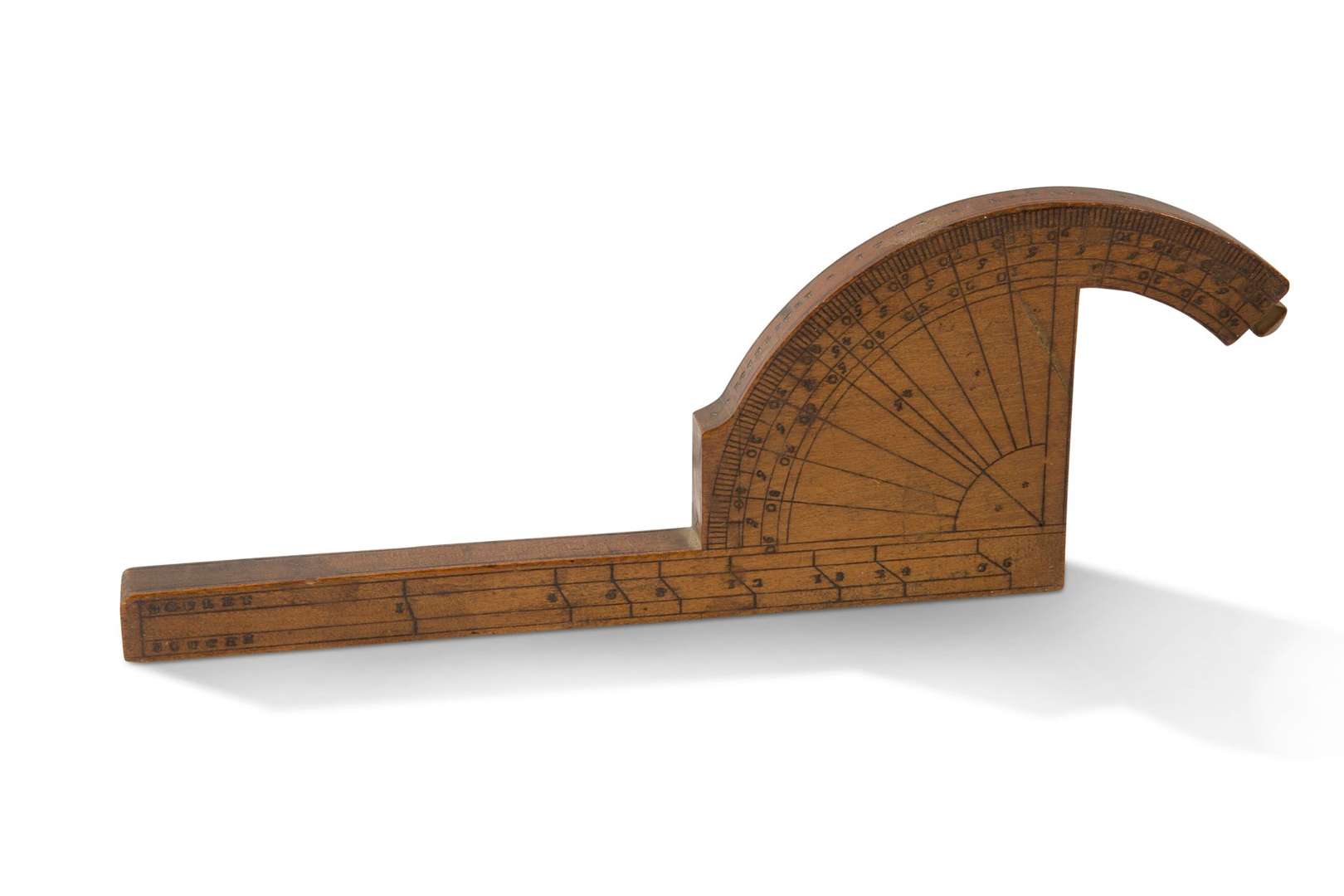 Hausse d'artillerie en buis gravé, le limbe à multiples graduations de 0 à 130° et de 0 à 90°, signé, situé et daté sur la tranche «A Rochefort - 1770/Lenain».