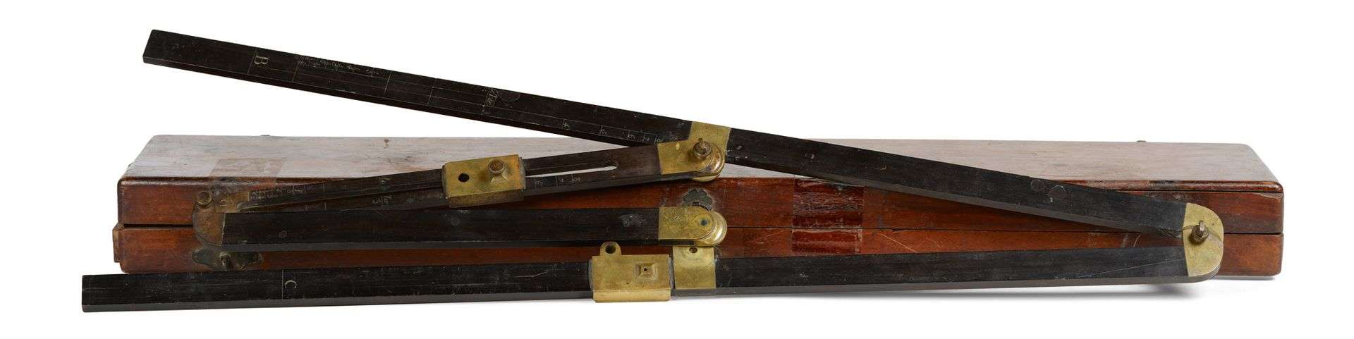 Grand pantographe en ébène gradué et laiton, signé «Pre Le Maire à Paris» dans sa boîte en bois rectangulaire.