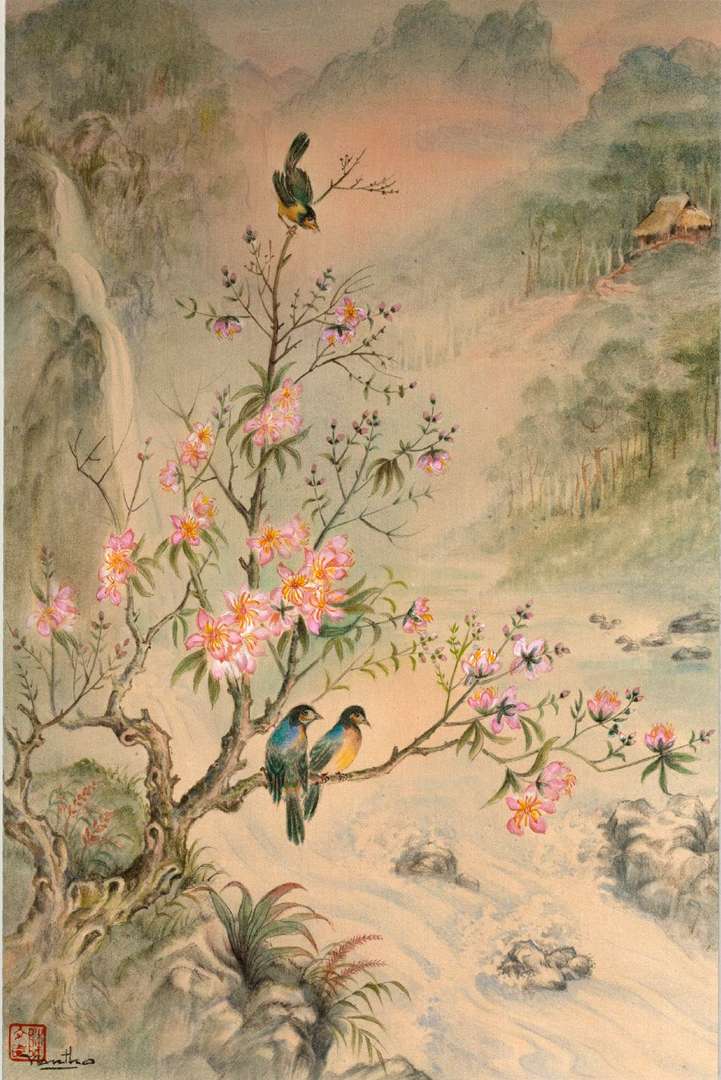 Peintures sur soie, Van Tho, Association salonaise d'Aide aux réfugiés du Sud-Est asiatique, Centre Municipal d'Animation Culturelle, 25 novembre - 9 décembre 1982, lot 24
