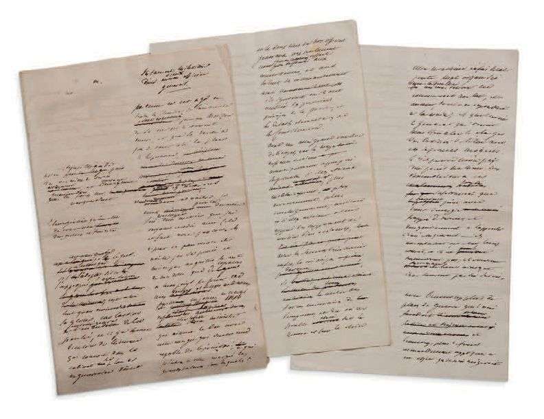 Le manuscrit présente de nombreuses ratures et corrections, avec des additions marginales.
