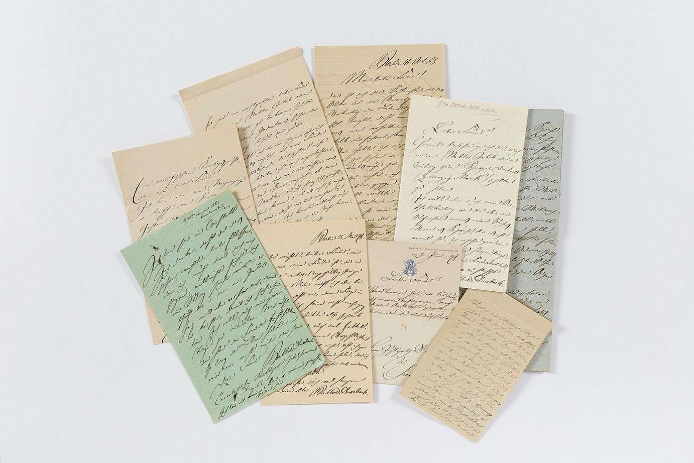 MANUSCRIT autographe signé, Lederherz | et 26 L.A.S., 1862-1881, à Ignaz ELLISSEN | 13 pages in-4 (plus un feuillet de dédicace | qqs légers défauts), et 49 pages in-8, plusieurs à son chiffre ou à son nom, qqs enveloppes | en allemand. Très bel ensemble de l'auteur des Schwarzwälder Dorfgeschichten (Récits villageois de la Forêt Noire). Le manuscrit, sur papier bleuté, sans autre correction qu'une addition marginale, est daté en fin de Berlin 6 février 1862. Il est dédié sur un feuillet liminaire à son ami Ignaz Ellissen. Lederherz (Cœur de cuir) est sous-titré « Aus den Erinnerungen des Pfarrers vom Berge » (des souvenirs du pasteur des montagnes), et a été publié anonymement par Auerbach dans ses Deutsche Blätter. Beilage zur Gartenlaube (N° 261, p. 81-85), éditées par Auerbach de 1862 à 1864, comme a bien voulu nous l'indiquer M. Eberhard Koestler. Lederherz (Cœur de cuir) est l'histoire d'un pauvre colporteur juif en Alsace, qui vend du cuir | son surnnom vient des pièces de cuir qui couvrent les couuudes de sa redingote | il est l'ami du cordonnier Lipp, très versé dans l'étude de la Bible, qui l'aidera à mourir religieusement. Ce texte est marqué par les idées de tolérance politique et religieuse, et par l'amour de l'humanité. Nous en citons le début : « Wahre Menschenfreundlichkeit zeigt sich darin, dass wir jedem Mitlebenden, der uns ungekannt und flüchtig begegnet, die gemeinsam gegebenen Augenblicke mit Gutem zu erfüllen trachten. Die wahre Menschenliebe bethätigt sich darin, dass wir den Gedanken der Zusammengehörigkeit festhalten, auch da, wo wir den Widerspruch und Gegensatz vor Augen haben. Nur wenn wir uns liebevoll gegen Menschen anderen Glaubens, anderer Überzeugung bewähren, nur dann haben wir das Recht, uns Bekenner der Religion der Liebe zu nennen »... C'est à Ignaz ELLISSEN, habitant Frankfurt am Main, qu'est adressée l'importante correspondance littéraire et amicale, commençant le 9 janvier 1862 pour s'achever le 8 mars 1881. La plupart des lettres sont écrites de Berlin | pendant les vacances de 1863, Auerbach séjourne à Cannstatt près Stuttgart (août), à Heiden dans le canton d'Appenzell (septembre)… Auerbach a joint à deux de ses lettres de 1862 des lettres reçues des professeurs B. Frankfurter et Russ. Cette correspondance est complétée par la copie ancienne de 5 lettres manquant à l'ensemble, comme l'explique une lettre jointe de l'exécuteur testamentaire d'Ellissen, transmettant l'ensemble en 1884.
