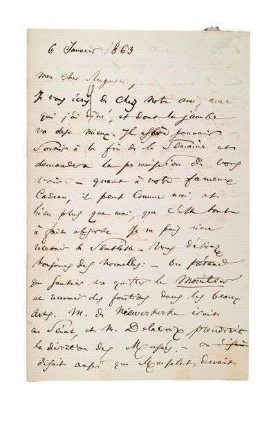 L.A.S. «C.B.» à Poulet-Malassis. S.l., 6 janvier 1863. 1 pp. ½ bi-feuillet in-8, adresse au verso, marque postale.