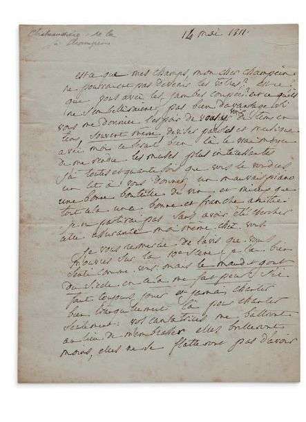 L.A.S. «D.L.C.», 14 mai 1811, à Stanislas CHAMPEIN| 2 pages et demie in-4, adresse.