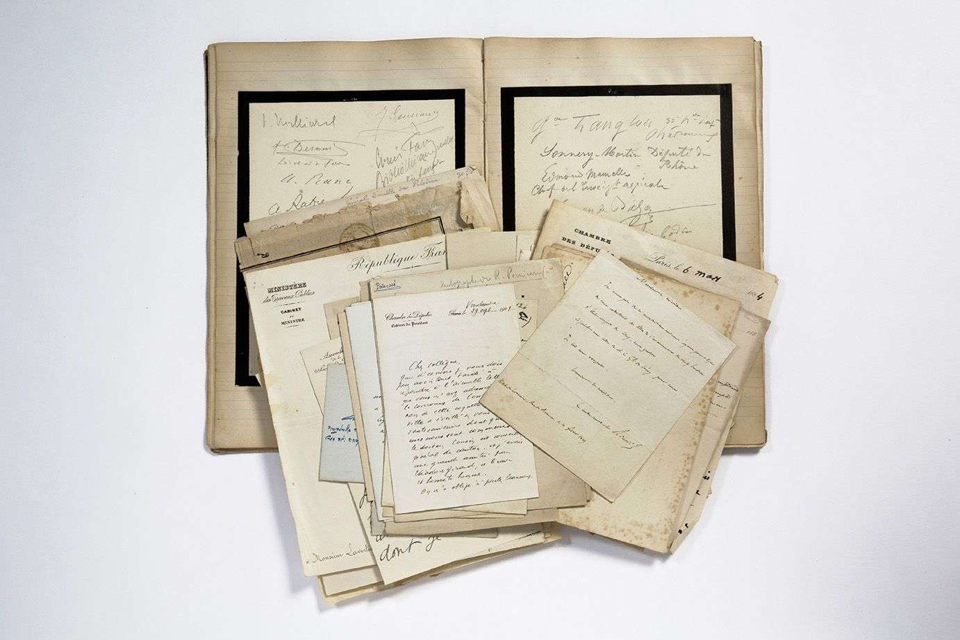 Joseph Barthélemy, Louis Barthou, R. Bérenger, V. de Broglie, F. Buisson, Émile Combes, Ad. Crémieux, Élie duc Decazes (1884), Th. Delcassé, Paul Deschanel, Eug. Étienne, Fabvier (à Gourgaud), C. de Freycinet, Galliffet, Yves Guyot, Ed. Herriot, Anatole de La Forge, amiral Mornet, gal Négrier, Paul Painlevé, Louis Passy, G. Payelle, R. Poincaré, Antonin Proust, Th. Ribot, gal Rolin, Léon Say (4), Jules Simon, Édouard Vaillant, mal Vaillant, René Viviani, R. Waldeck-Rousseau, etc.