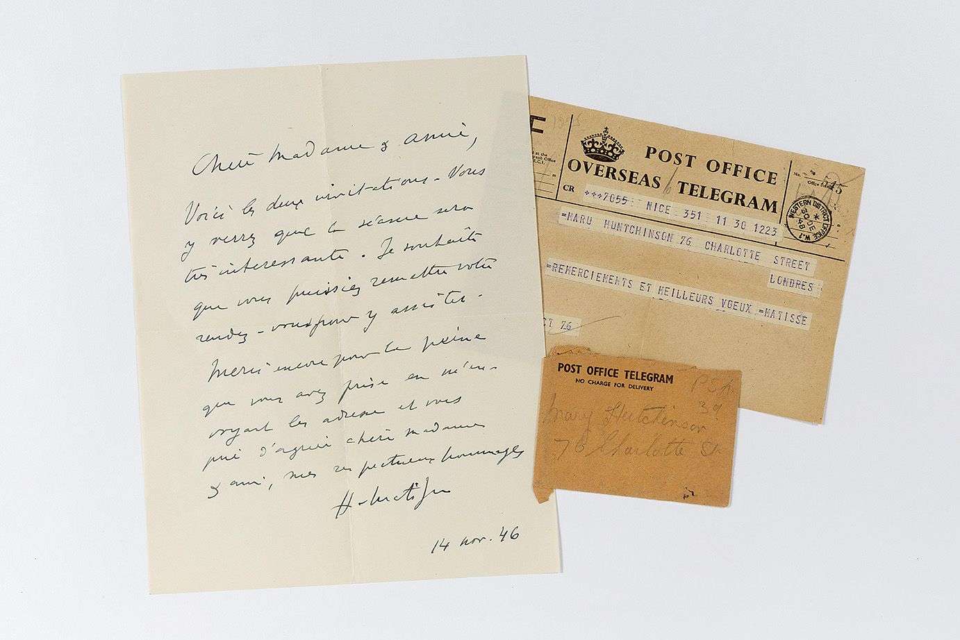 L.A.S. « H Matisse », 14 novembre 1946, à Mary HUTCHINSON | 1 page in-8, enveloppe.