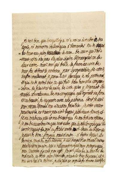 [Dans sa lettre, datée du même jour que la préface de ses Doutes sur la liberté de l'Escaut, réclamée par l'Empereur (Londres, G. Faden, 1784), Mirabeau parle de son travail, de sa maîtresse Henriette de NEHRA, et d'un pamphlet de Joseph SERVAN, probablement Questions du jeune docteur Rhubarbini de Purgandis, adressées à MM. les docteurs-régens, de toutes les facultés de médecine de l'univers, au sujet de M. Mesmer, & du magnétisme animal (Padoue, dans le cabinet du Docteur, 1784).] «Je vois bien que lorsqu'il n'y a ni services à rendre à tes amis, ni mémoires balloniques à demander tu te rappelles tout au plus, le nom de ceux qui t'aiment, et tu n'as pas la plus légère démangeaison de leur écrire. Mais moi qui brûle la fievre au coin de mon feu, et dont la poitrine, par sympathie je crois, souffre cruellement, je pense à toi parce que je me porte mal, et que tu te portes bien, ce qui fait dans mon ame compensation de plaisir et de peine, de sorte qu'en y joignant l'aimable convalescence de ma compagne [Henriette de NEHRA] qui reprend sa force et sa beauté, je supporte avec une patience dont je suis moi-même étonné ma situation pénible. Je m'en veux pourtant de ne t'avoir pas écrit depuis plusieurs jours, et je ne m'absous pas en me disant que tu me dois une réponse| je me dis au contraire que tout autre que le philosophique Toi seroit inquiet de moi ou fâché contre moi. Dans les deux cas je puis te dire: frappe mais écoute. À dater depuis les derniers jours du mois dernier, je suis occupé d'un travail instant, pénible et nécessaire qui a tellement rempli mon temps que mes journées n'y ont pas suffi| j'ai pris plus de la moitié de mes nuits, ce dont mon Henriette m'auroit bien dispensé, et je me suis tué à ce métier. Je n'ai plus un corps