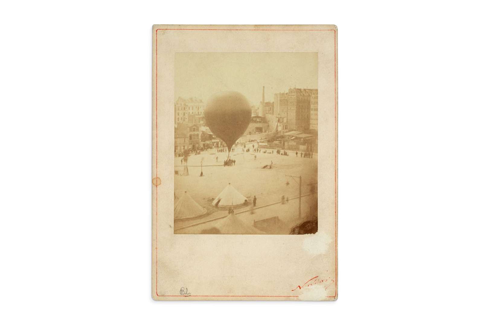 Photographie originale de son ballon Le Neptune, premier ballon à avoir quitté Paris assiégé le 23 septembre 1870. Piloté par Claude-Jules Duruof, l'un des trois signataires de la Convention des aérostiers, il s'envole de la Place Saint-Pierre à Montmartre. Le ballon atterrit à côté d'Évreux, au château de Cracouville, après un vol de 100 kilomètres.
