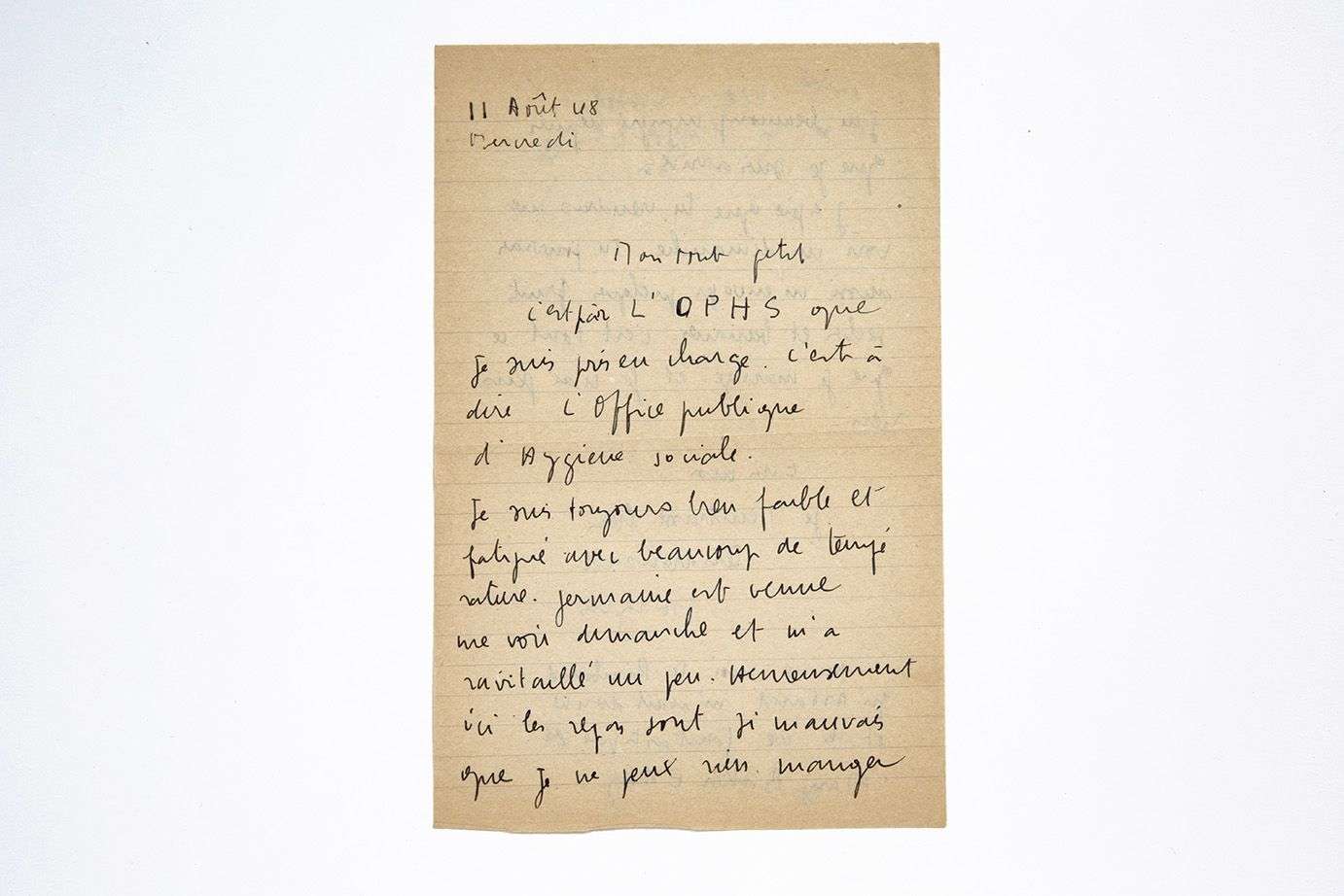 Il est malade et pris en charge par « l'Office publique d'Hygiène sociale. Je suis toujours bien faible et fatigué avec beaucoup de température. […] ici les repas sont si mauvais que je ne peux rien manger. J'ai beaucoup maigri ». Il demande de venir le voir, et de lui envoyer des fruits, ainsi que « le Rimbaud qu'Artaud m'avait donné et la vie fantastique de Mary Baker Eddy ».