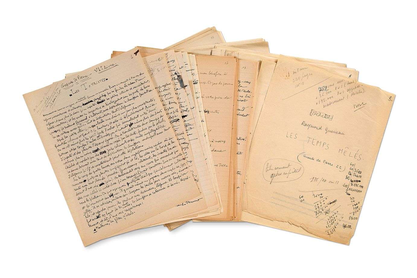 Ensemble des notes et manuscrits préparatoires et du tapuscrit corrigé de ce septième roman de Queneau, suite de Gueule de pierre.