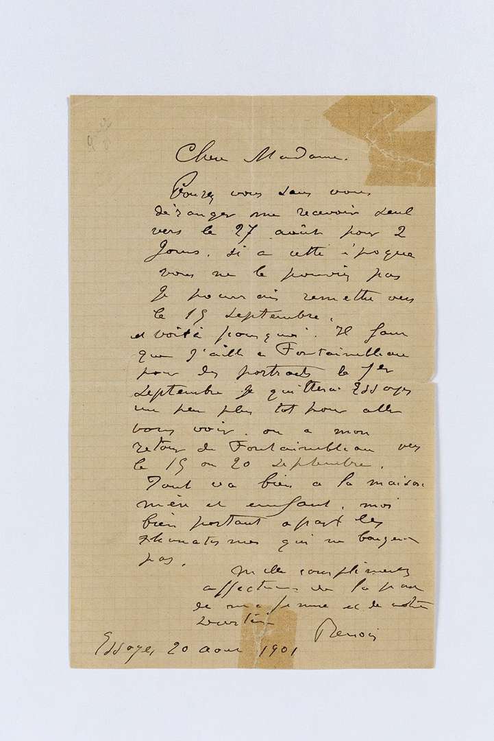 L.A.S. « Renoir », Essoyes 20 août 1901, à une dame | 1 page in-8 (2 déchirures réparées au scotch).