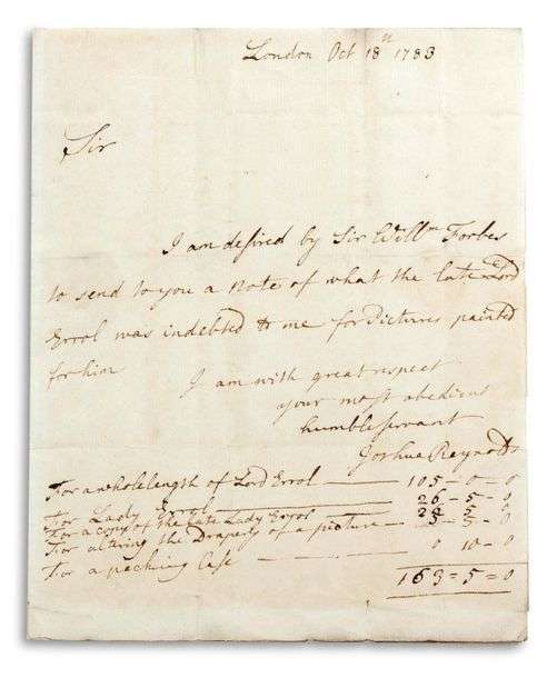 L.A.S. « Joshua Reynolds », Londres 18 octobre 1783, à John WAMHOPE, « Writer to the Signet » à Edinburgh | 1 page in-4, adresse avec sceau de cire rouge | en anglais.