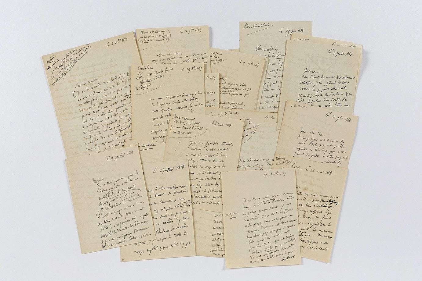 22 L.S. avec corrections et additions autographes (minutes, 2 non signées), 1866-1868 | 44 pages in-8 ou in-12.
